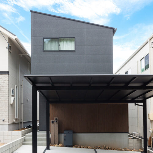 都会的なデザインと木の温もりが調和するモダン住宅