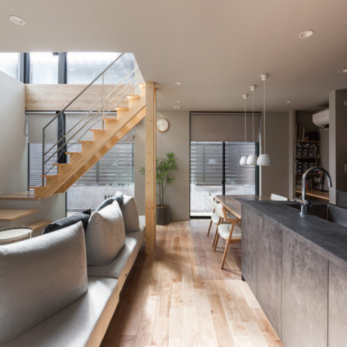 シンプルなフラットデザインに自然な風合いをプラスし、外観をモダンに演出しています