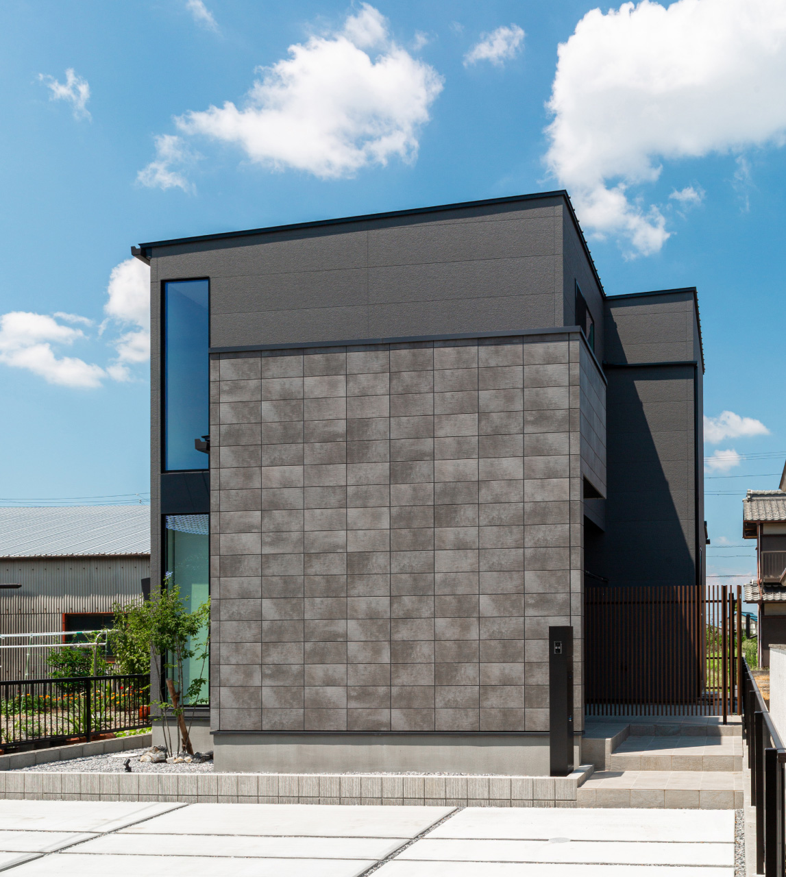 ホテルライクな住宅を実現する大型タイルをアクセントにしています